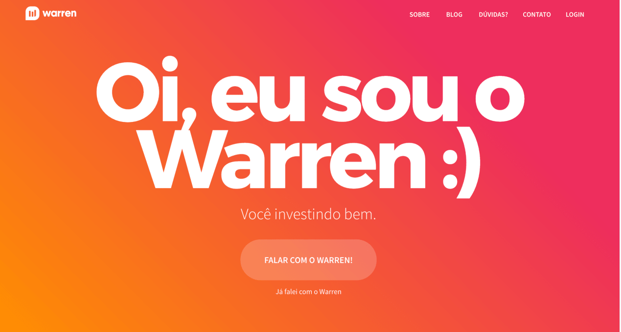 Warren é um ótimo exemplo de chatbot, da empresa Warren Investimentos.