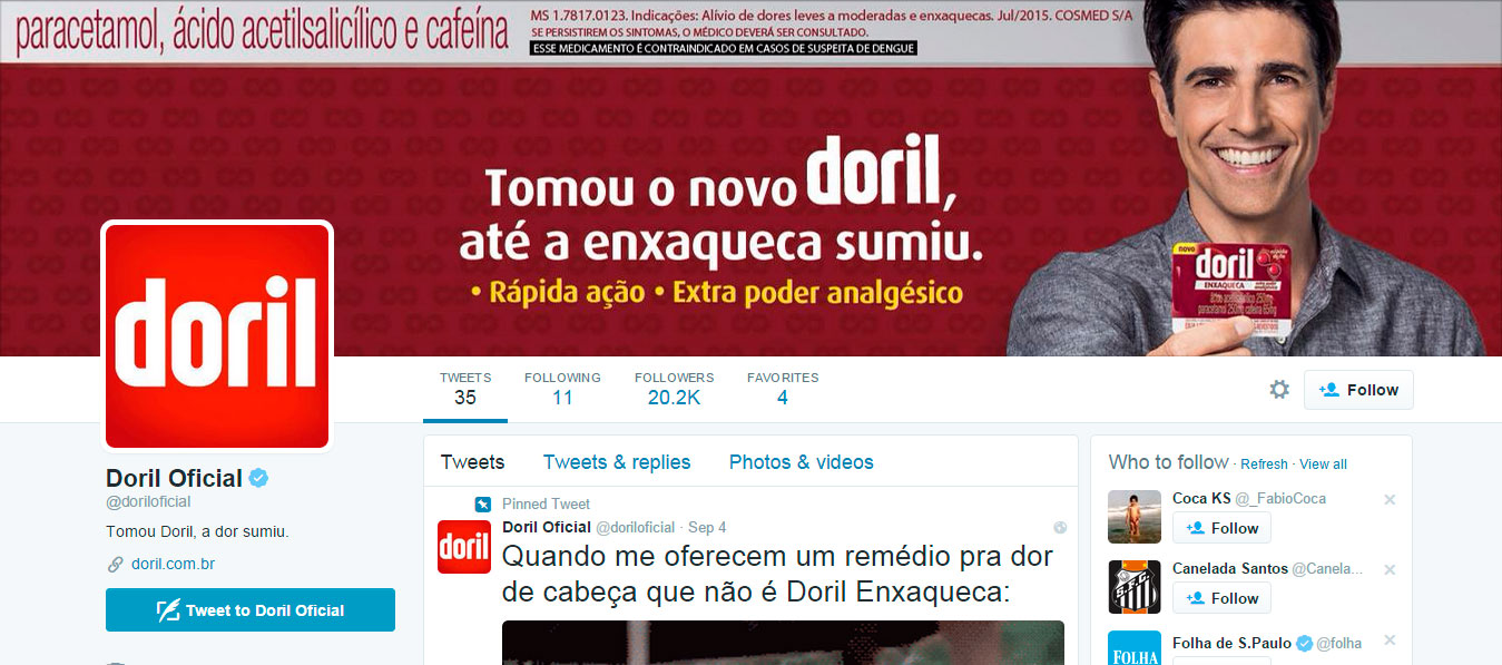 Esta é uma forma de atrair a atenção para a sua campanha foi criado um twitter da marca para explicar quando usar o medicamento.