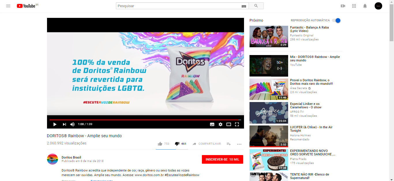 O Doritos escolheu uma forma atractiva de promover o seu produto usando a diversidade durante a parada do orgulho LGBT+. Eles adicionaram uma foto de um saco do salgadinho enrolado em uma bandeira que imediatamente chamou a atenção e os incentivou a deslizar para cima para obter a oferta.