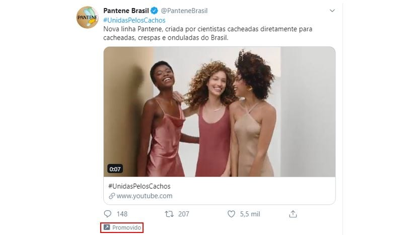 Nesse exemplo, temos a marca Pantene em que é possível verificar que a propaganda foi promovida para engajar mais.