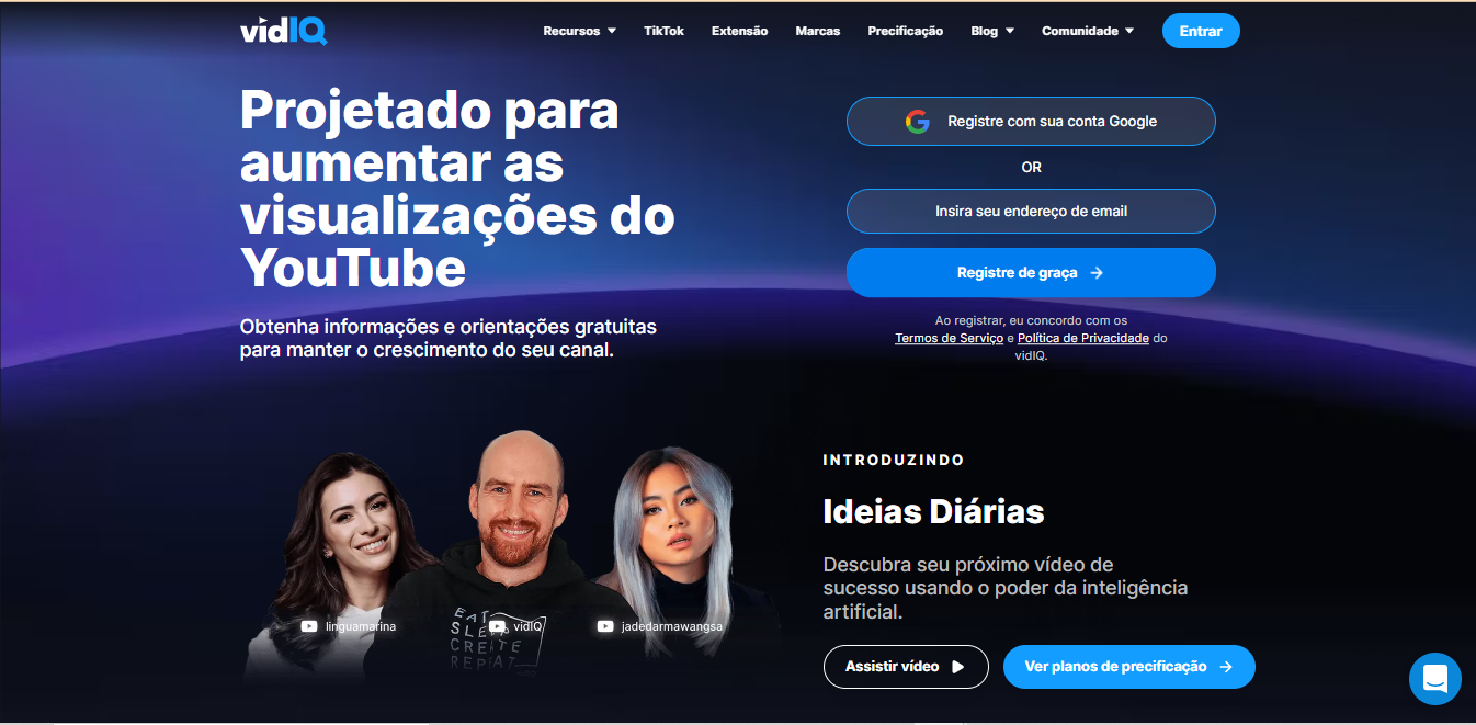 Essa última dica é para você saber quem está, realmente, assistindo seus vídeos no YouTube. O VidlQ é o queridinho dos Youtubers mundial por fornecer uma análise do público que está assistindo os vídeos. Além de fazer um alerta sobre influenciadores de conteúdo que visualizaram e gera resultados para quem está querendo fazer direcionamento de conteúdo.