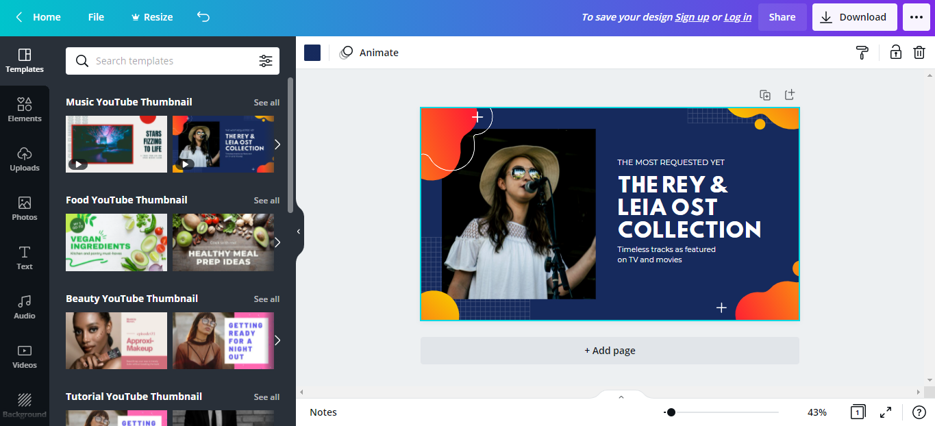 Dê uma olhada no editor do Canva para criar diferentes tipos de miniaturas do YouTube.