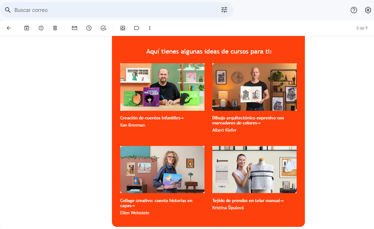 En la siguiente imagen se pueden ver recomendaciones personalizadas por parte de Domestika.