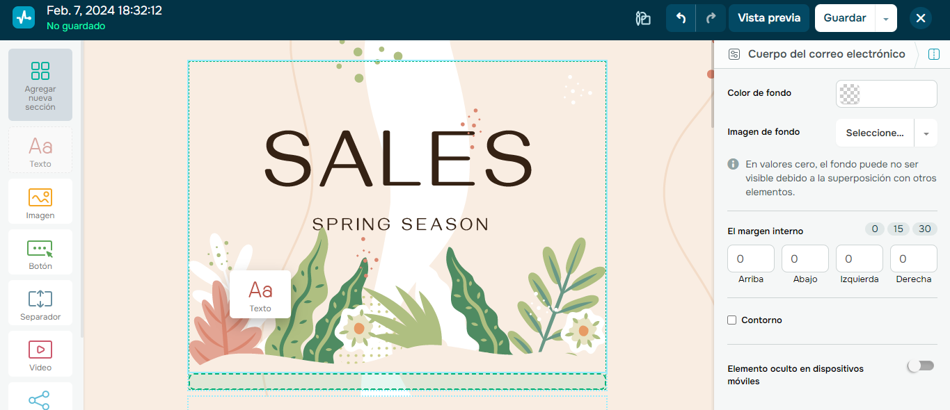 A continuación puede ver cómo modificar una plantilla lista para usar a tu gusto con el constructor de SendPulse.