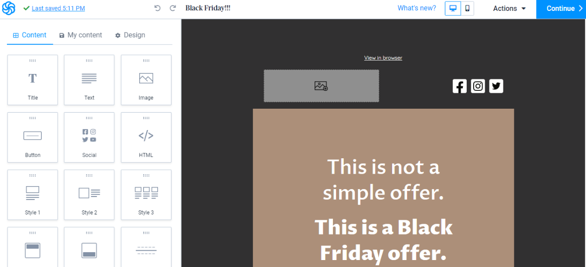 A continuación puede ver cómo utilizar el constructor intuitivo de Sendinblue.