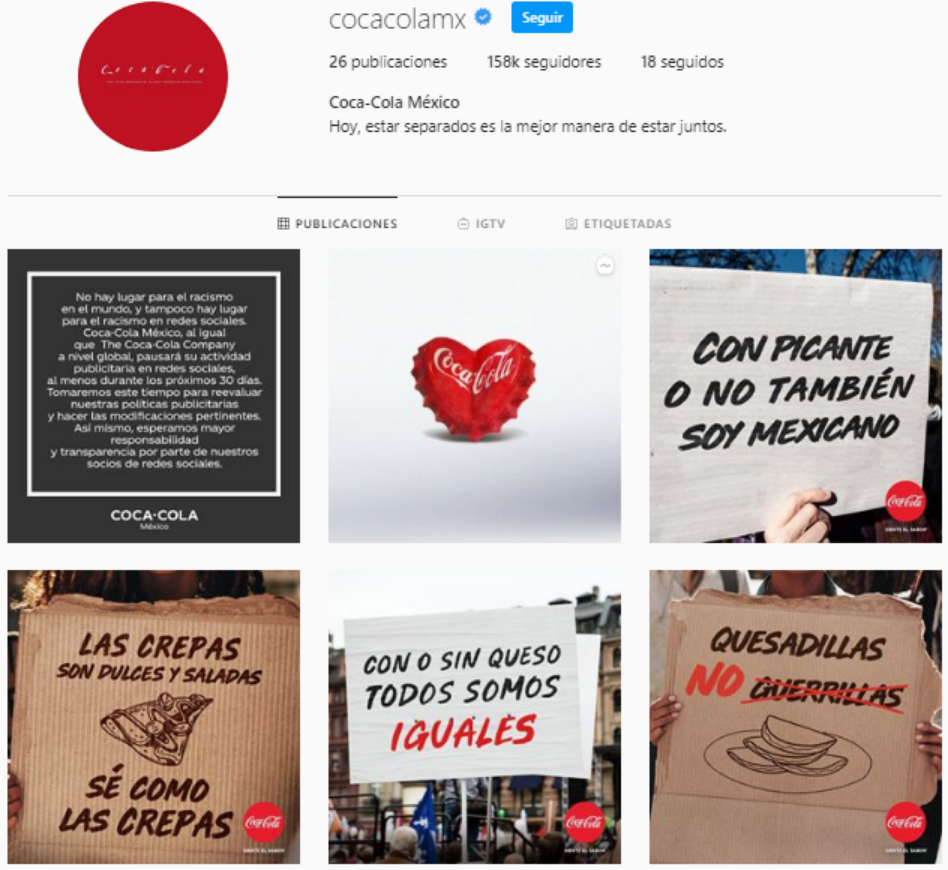 Otro punto a considerar es tu consistencia visual. Las imágenes de tu perfil de Instagram deben dar una impresión de unidad. Puedes lograr esto utilizando ciertos filtros o ajustes preestablecidos de Instagram. Mira cómo Coca Cola usa su estilo de marca para Instagram y crea coherencia con las imágenes.