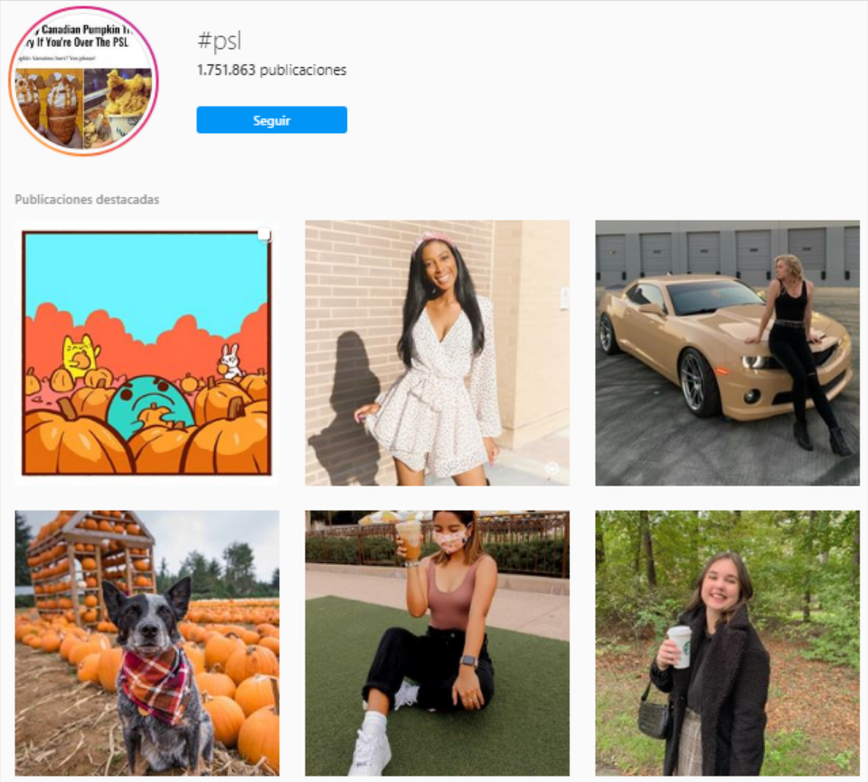 Para fomentar el UGC, Starbucks lanza constantemente campañas utilizando un puñado de hashtags de marca. Este último ayuda a la empresa a inspirar seguidores y promover nuevos productos. Por ejemplo, Starbucks recientemente ha estado usando el #psl para promocionar su Pumpkin Spice Latte de temporada y ya empiezan a haber cientos de UGC de personas consumiendo su bebida.