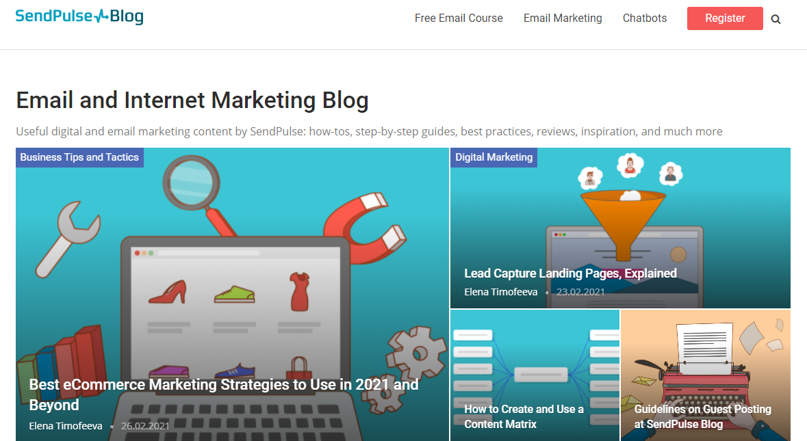 Let’s take SendPulse, for example. The service has a blog that contains articles on various relevant marketing topics. This allows customers to study a specific topic, learn more about this service, and make a deliberate decision.