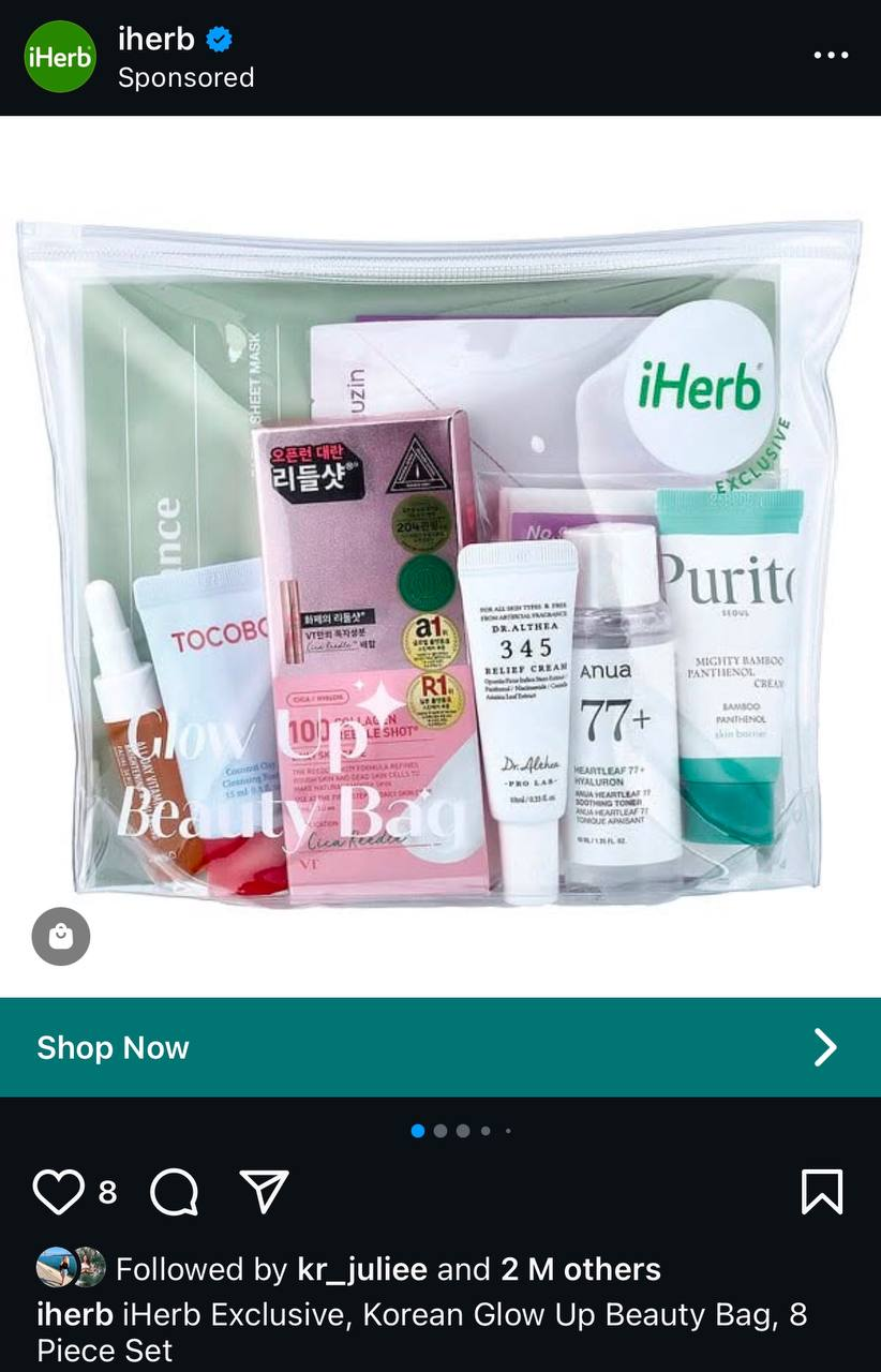 Many brands use targeted advertising to communicate with the right audience, and iHerb is no exception. The well-known online retailer, which offers health and wellness products, runs ads on Instagram to deliver its promotional message to a wider audience interested in purchasing the company’s products. This ad targets individuals who have already searched for specific wellness products, visited the business’s website, or compared it to competitors. Its smart targeting enables iHerb to interact with the right people, provide them with relevant offers, and let them make instant purchases using Instagram Shop.
