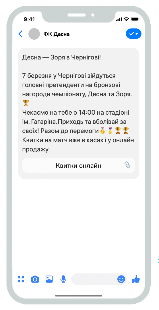 Чат-боты становятся все популярнее как инструмент коммуникации между людьми и бизнесом. В этой статье мы покажем, как клуб украинской премьер-лиги «Десна» с помощью чат-бота наладил душевный контакт с подписчиками, сделал для них удобный источник информации о жизни клуба и обеспечил комфорт на матчах.