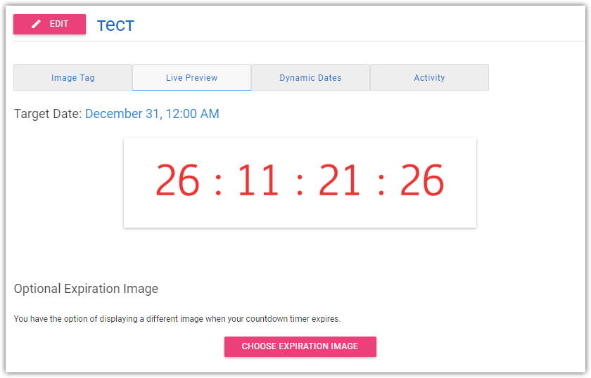 Исходя из плюсов и минусов каждого сервиса, мы остановились на Niftyimages. Таймер, созданный с помощью этой платформы, мы и будем вставлять в шаблон письма SendPulse.