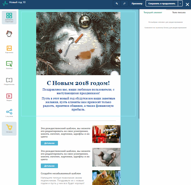 - Выбираем бесплатный шаблон письма из доступных или переходим в HTML-редактор для создания своего шаблона.